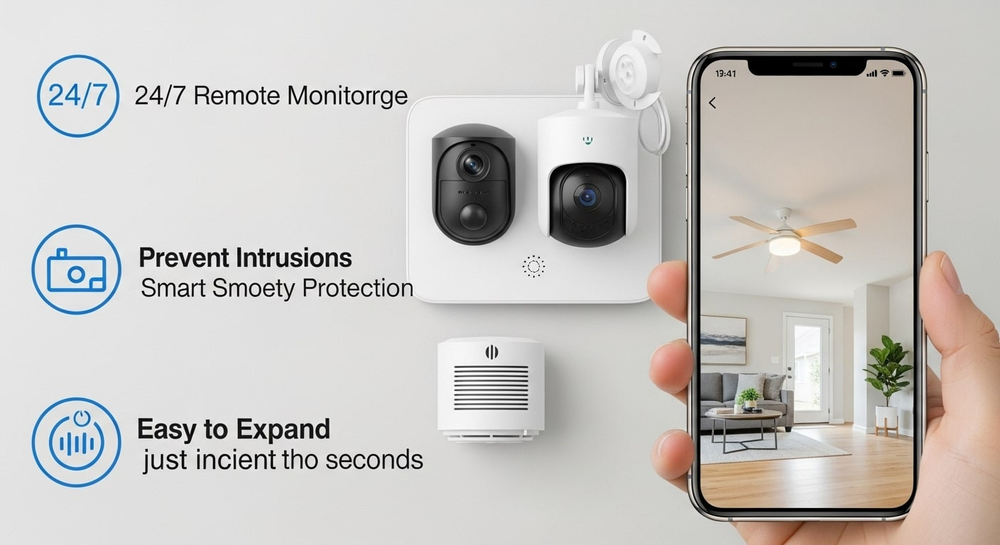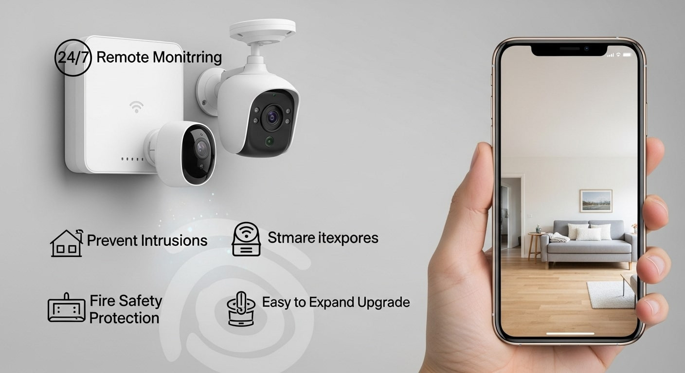Hệ thống an ninh gồm camera giám sát, cảm biến cửa, cảm biến chuyển động và cảnh báo khói thông minh là giải pháp toàn diện giúp bạn bảo vệ gia đình và tài sản một cách hiệu quả.
